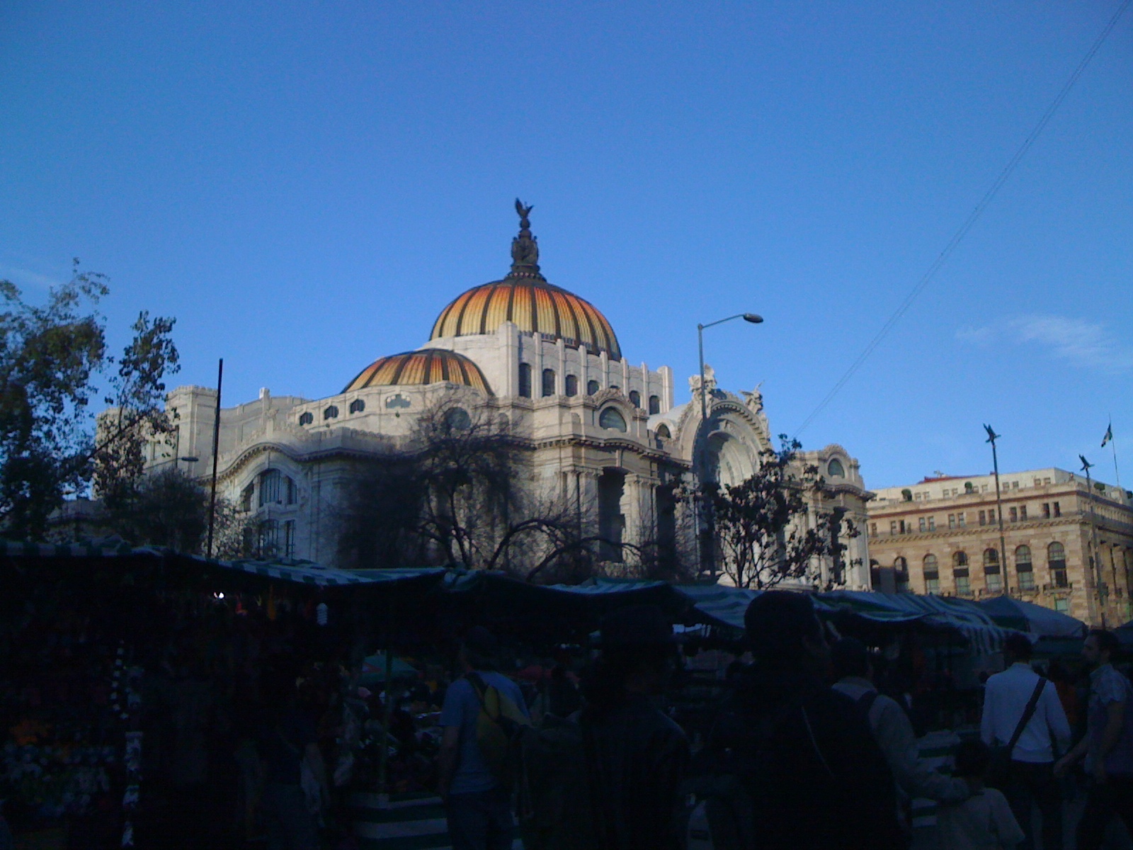 Después pasamos a la Alameda Central y hasta ahí llegamos. La pobre alameda es un mercado al aire libre. Lleno de comercios informales de todo tipo, llena de ruido, gente y basura. Una lástima. Antes de retirarnos tomé una foto del Palacio de Bellas Artes y el mercado que tiene a su alrededor.