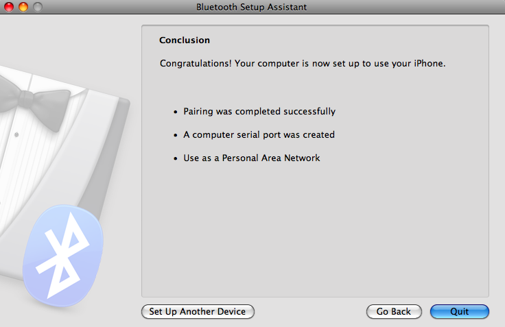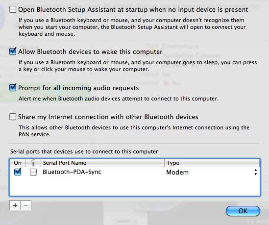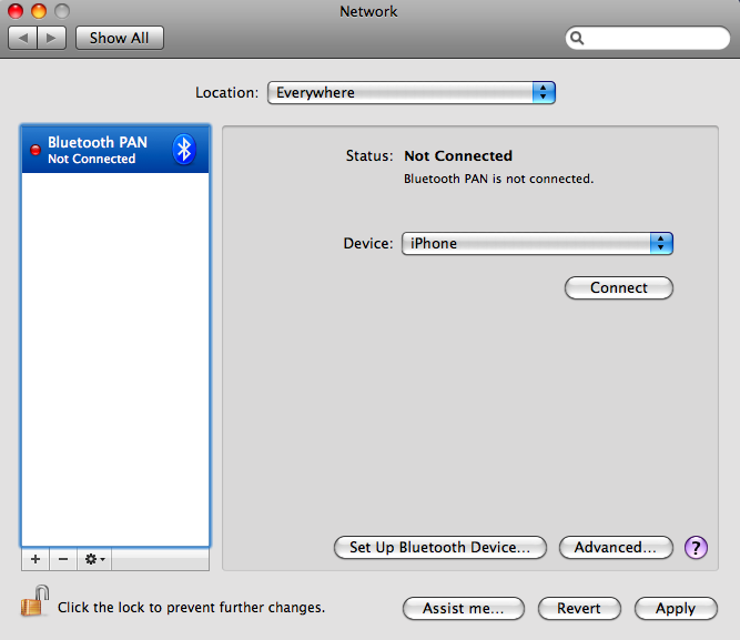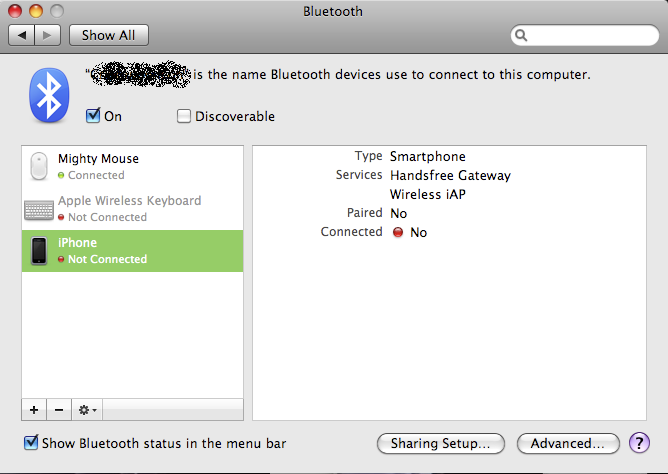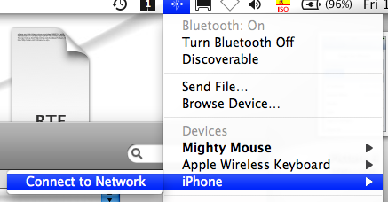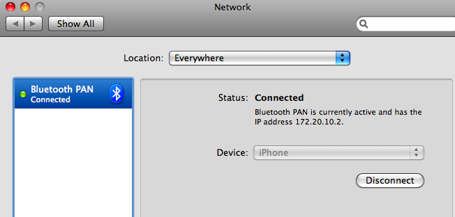 Bluetooth es la tecnología creada por Ericsson en 1994 como una alternativa inalámbrica para el protocolo serie RS-232, y que se ha adoptado como un standard para interconectar dispositivos electrónicos de uso personal a cortas distancias. Este método de enlace inalámbrico, en el caso del iPhone, permite, además, compartir el enlace a internet del teléfono (o emplearlo como módem si se prefiere ver) con los servicios que provee Telcel en México mediante tethering. La configuración del teléfono y la computadora se lleva a cabo de la siguiente manera (para este ejemplo se empleó un iPhone 3G con iOS v4.2 (con plan Amigo Kit de Telcel y servicios de Banda Ancha 3G contratada por 30 días) y una MacBook con Mac OS X 10.6). Primero, en la computadora se verifican los servicios de Bluetooth. Desde System Preferences se da click en la opción de Bluetooth.