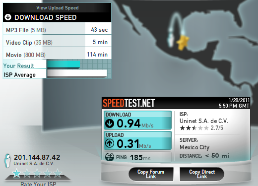 Una vez en verde el indicador podemos abrir con seguridad cualquier aplicación que se conecte a la Internet y estar seguro que ésta responderá. Si estamos acostumbrados a trabajar con un enlace rápido seguramente notaremos el enlace por Bluetooth muy lento. En mi caso estos son los resultados que www.speedtest.net me devuelve: