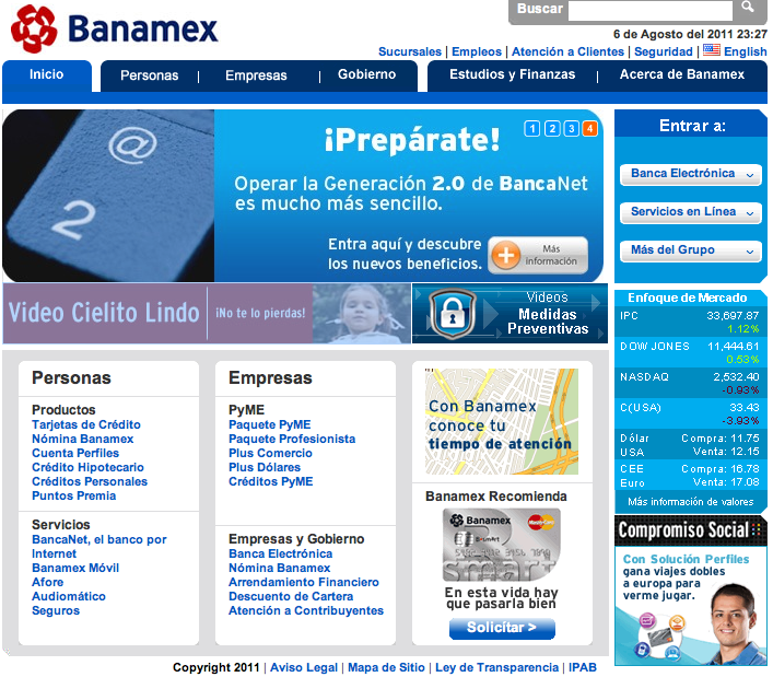 Ahora sobre el que el portal de Bancomer tenga muchos más visitas que el de Banamex resulta interesante. Hay que reconocer que el portal de Bancomer responde muy rápido a pesar de ser visualmente más atractivo con muchas imágenes y dibujos.