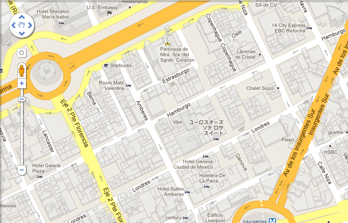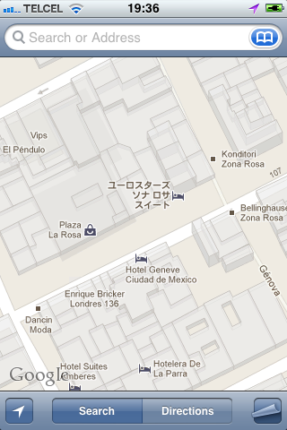 Hoy noté en la aplicación Maps de mi iPhone que sobre la Zona Rosa que el nombre de un edificio o lugar que es presentado en japonés. En ese momento pensé que sería algo único y aislado y no le di mayor importancia.