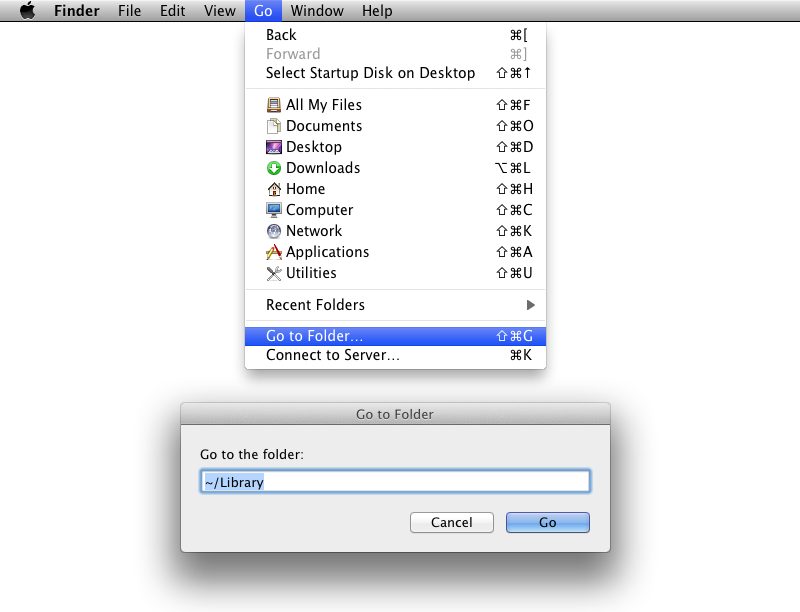 Por defecto en Lion (Mac OS X 10.7) , el directorio (carpeta o folder, como las nuevas generaciones están acostumbradas a decirles a estos contenedores del file system por influencia de las interfaces gráficas) Library no se muestra, ni en el Finder ni en el resultado del comando ls en la Terminal. Por supuesto, la primera acción para tratar de sortear este problema es recurrir a la opción Go to Folder… del menú Go del Finder.