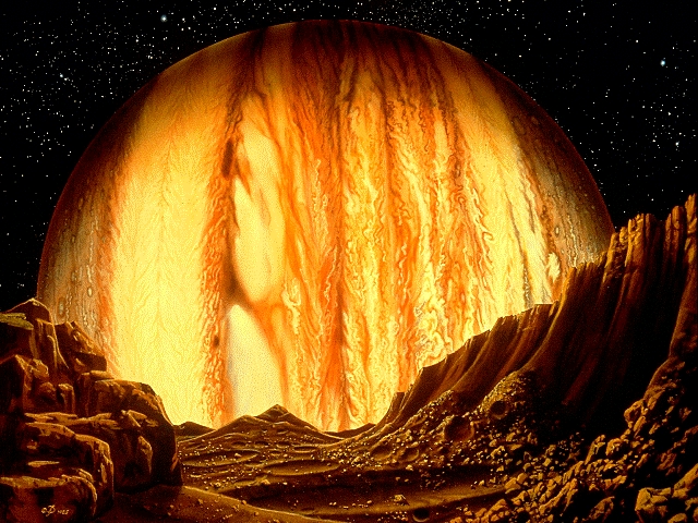 Se que mucha gente antes que mi se ha preguntado esto. Científicos y artistas han tratado de responder a esta pregunta a su modo, interpretando artísticamente como sería una vista o la típica vista desde algún lugar en el sistema joviano, imaginando la vista de una fase de Júpiter apareciendo por el horizonte de alguna de sus lunas