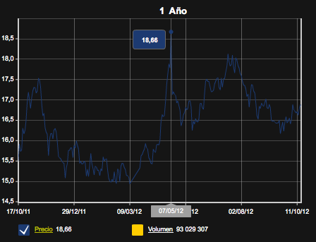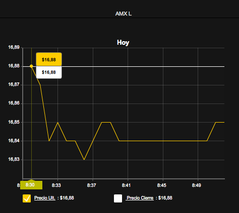 AMX por su parte, parecía que iba para abajo, al topar con  algún precio de resistencia. ¿O sería meramente mi imaginación?