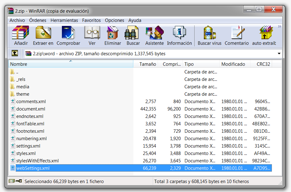 ZIPempleando alguna utilería para ello y localizar el archivoword/webSettings.xml.