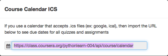 De los cursos en línea que menciono al inicio de este post, los MOOC, me subscribí al calendario de uno de ellos. En un inicio parece bien pero conforme avanza el tiempo uno empieza a ver las entradas de fechas pasada y (depende cada quien, en mi caso así es) se convierten en una distracción (e inclusive preocupación).