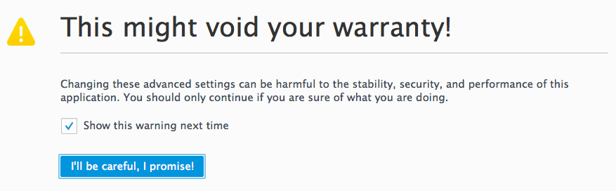 Desde la funcionalidad de configuración de Firefox, cambiar estos elementos específicos no es posible. Esto debe hacerse desde about:config (con lo que aparece un mensaje muy amenazante señalando que la garantía- ¿? – se puede perder si uno se mete con el detalle de la configuración del browser).