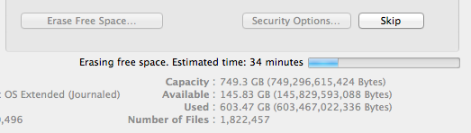 Al respecto del título del post, decidí tomarlo precisamente del nombre del botón de la utilería de la que he hablado. Sé debe sonar contradictorio pero no lo es. Lo que esta opción hace es escribir ceros binarios sobre el espacio que no es ocupado pero en este proceso algunas acciones de reorganización de las estructuras del file system se dan, lo que permite mejorar algo el desempeño y, más importante, hacer mantenimiento en ellas.