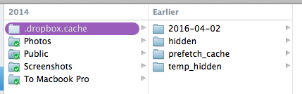 Así que la estrategia seguida por Dropbox es diferente a la que pensé inicialmente. Adicionalmente, aunque parece que es poco probable que sea necesario hacerlo, dentro del directorio de Dropbox, existe un caché, que al parecer es usado para cuestiones de contabilidad y emergencias de recuperación. Uno puede llegar ahí directamente y borrar su contenido si uno está seguro de que los archivos en su interior ya no son importantes y si a uno le urge recuperar el espacio ocupado por éstos.