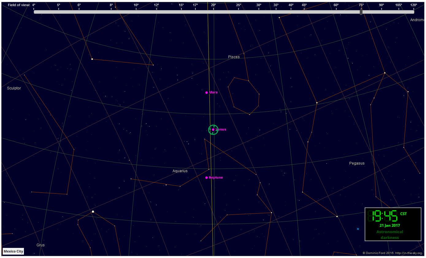 El GPS del celular ubica la primer foto en 19°30’25.931″ N, 99°08’43.501″W. La siguiente es un zoom de Venus.