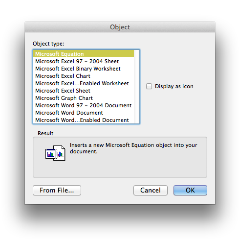 Recientemente me ocurrió que al tratar de ejecutar el editor de ecuaciones de Microsoft Word for Mac 2011, éste no funcionaba o mostraba un mensaje de error. En mi caso cuento con la instalación tanto del Office for Mac 2016 como la ya mencionada. Coexisten muy bien.