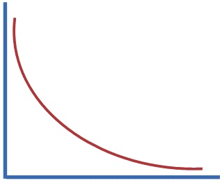 Así, para mi no es una curva de campana, el proceso es más como una curva asintótica.