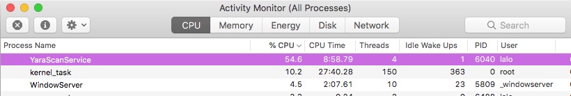 Un primer tema es el relacionado con un proceso que aparece al iniciar el equipo y que consume una buena parte de los recursos de la CPU por un rato. Pueden ser 10 minutos o algunas horas. Este proceso es el YaraScanService. Se trata de una herramienta de detección de malware, no es un anti-virus como se indica en varias referencias que pueden hallarse en la Internet, me parece que es algo más que eso.