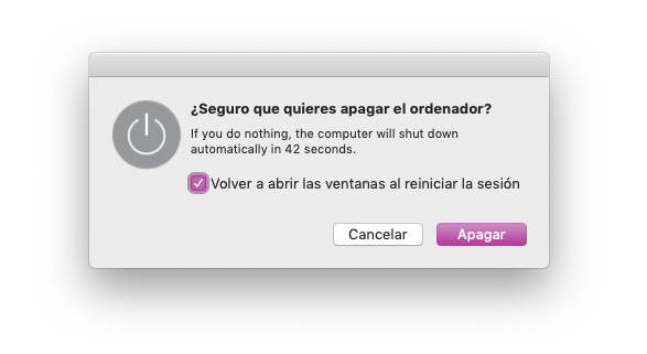 Hay un bug en macOS 10.14 con los lenguajes empleados para mostrar el aviso de apagado (shutdown),