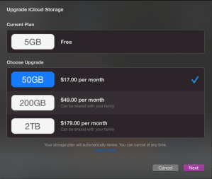 Hace poco más de un año que escribí como decidí volverme subscriptor de Apple en sus servicios extendidos de almacenaje. Tras probar brevemente el servicio más barato, pasé a adquirir la opción más cara.
