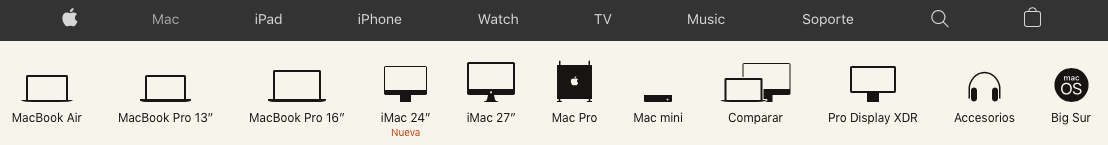 Mientras exploraba opciones y precios en el sitio de Apple para México, veía las distintas categorías al dar click en la opción «Mac» del menú principal.
