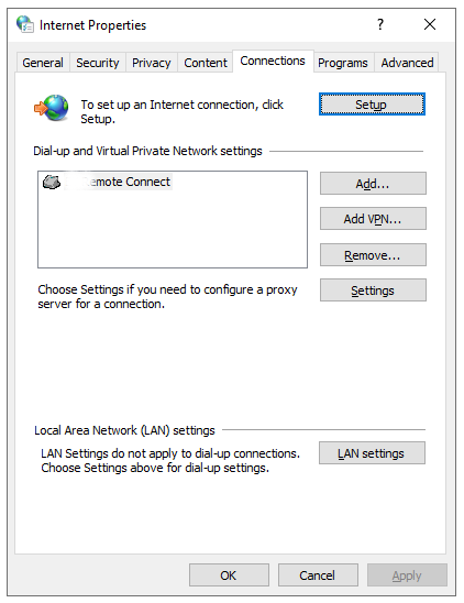 seleccionar la pestaña de conexiones, y LAN Settings.