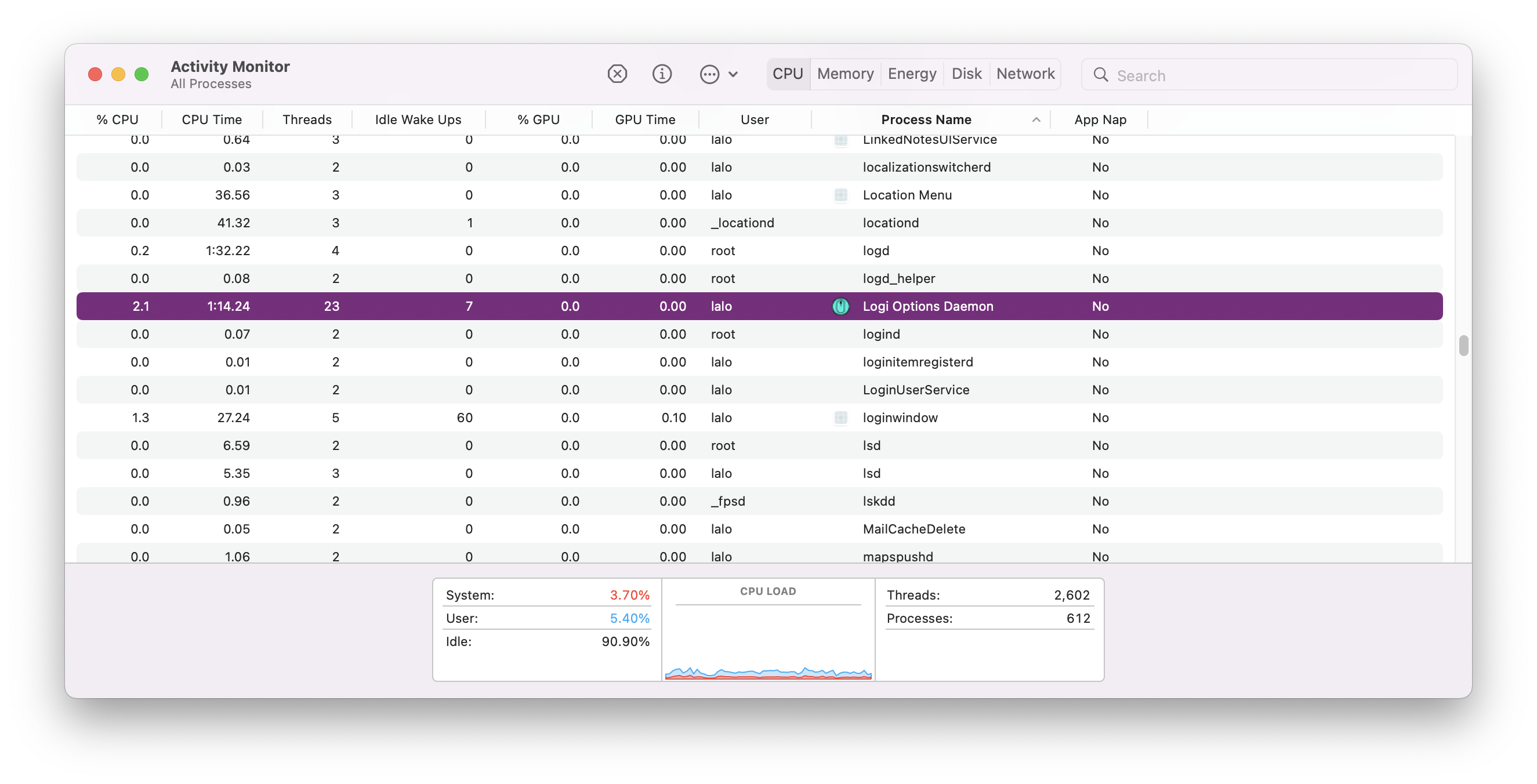 La solución por el momento ha sido matar el proceso del demonio de Logitech Options desde el Activity Monitor. Si bien parece que no es posible matarlo (y el «Force Quit» no parece estar disponible), sí se recupera la funcionalidad de la rueda de scroll.