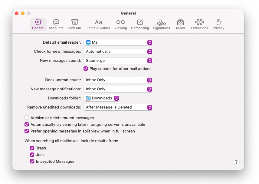 Una nota importante es declarar al cliente de correo por defecto en el sistema operativo. Para el caso de Mail en macOS, esto puede hacerse desde las preferencias del cliente de correo: Mail > Preferences > General.