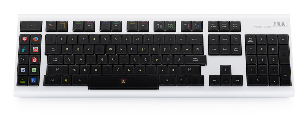 En una entrada previa de esta serie de posts, llegué a mencionar un teclado que ojalá hubiera perdurado: el Optimus Maximus. La pregunta ahora es ¿por qué continuamos con teclados de glifos impresos? Con el avance tecnológico actual, y obligado abaratamiento de costos de producción por alta demanda, estos teclados de capuchas plásticas inmutables deberían ser cosas ya de pasado.