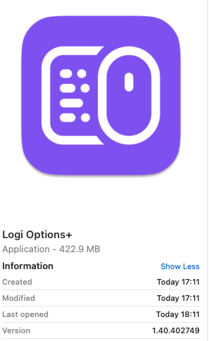 Mientras revisaba el estado de mi sistema, me pareció ver reminicencias de software de Logitech que pensé ya haber eliminado por lo que decidí hacer algo de limpieza y eliminé las aplicaciones de Logitech haciendo uso de AppCleaner. Descargué la más reciente versión de Logi Options y Logi Options+, y procedí con las instalaciones, sólo para encontrarme con el mismo problema: Logi Options+ no arrancaba.