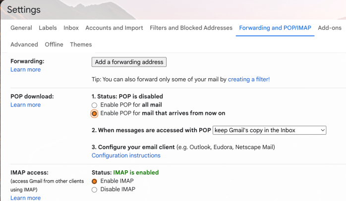 La corrección no fue fácil de hallar pero si de efectuar. Bastaba activar la opción POP (que parece no afecta a la configuración IMAP).