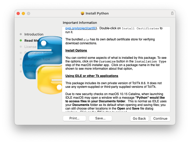 - Bob Savage, «5. Using Python on a Mac«, python.org, web. Updated: 2024.04.27; visited: 2024.04.27. URL: https://docs.python.org/3/using/mac.html.