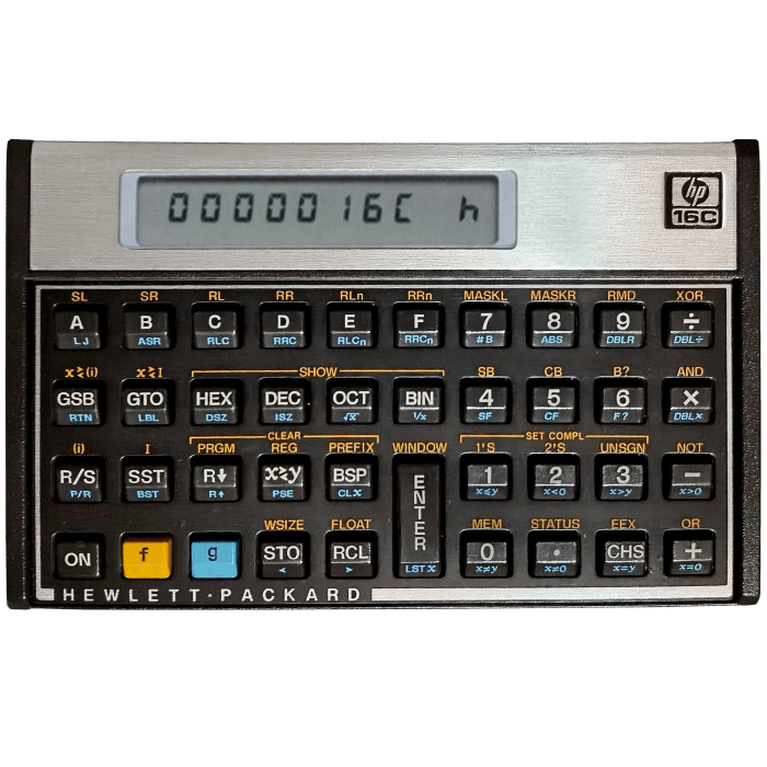 Hace cuatro años y nueve días publiqué una última entrada en esta serie, en la que relataba la compra de una HP-16C. Desde entonces la he usado de forma ocasional pero ya desde hace tiempo (imposible decir cuánto) estaba arrumbada en el cajón donde tengo otras calculadoras. Hoy la saqué y vi con tristeza y preocupación 😱un ligero derrame en los bordes superior e inferior de la pantalla LCD.