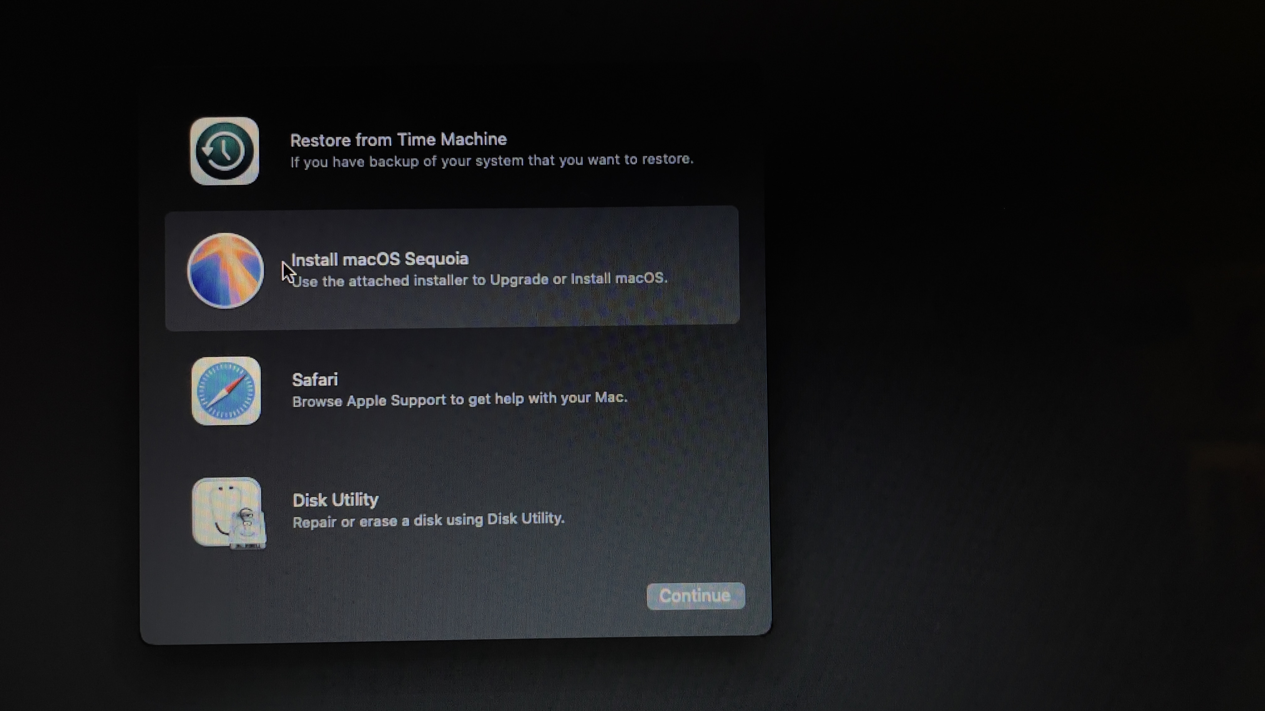 En este punto uno debe seleccionar la instalación de la versión de macOS elegida (opción seleccionada en la imagen). Lo siguiente será el menú de opciones del instalador.