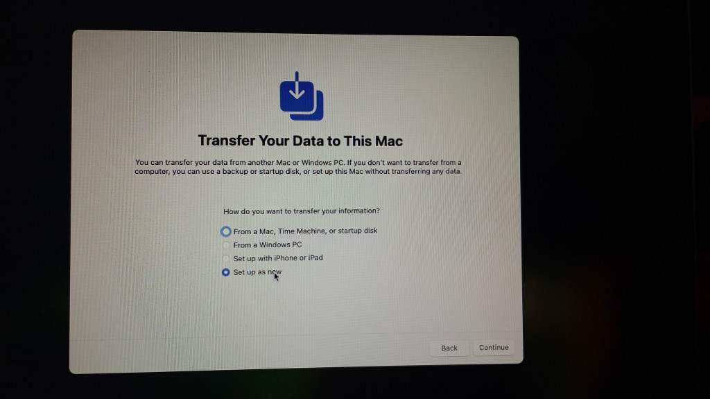 Esto llevó a que se mostrarán las pantallas de configuración iniciales de macOS.