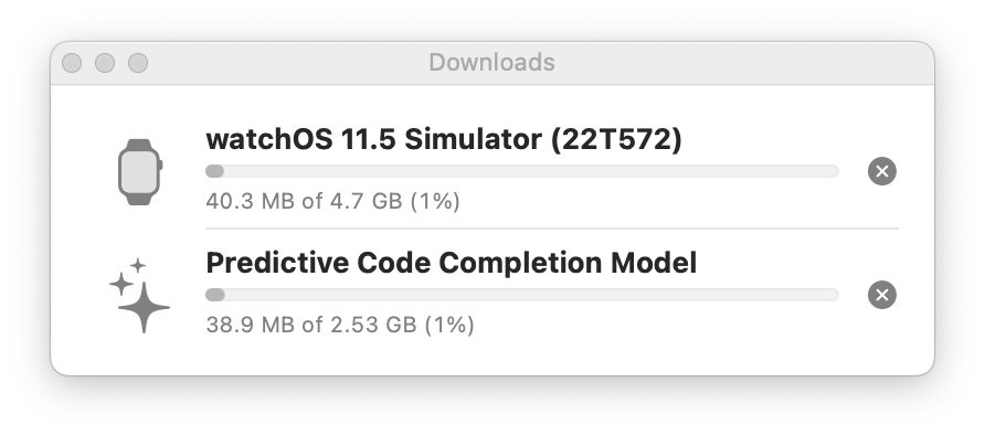 Por supuesto, todos esos componentes adicionales, listados en este formulario, pueden ser instalados desde Settings. Una vez seleccionados, y tras dar clic en Download & Install, la aplicación abrió su interfaz de edición y dejó los procesos de descarga ejecutándose a la par de la presentación de la interfaz principal de Xcode. De estos ya escribié más adelante.