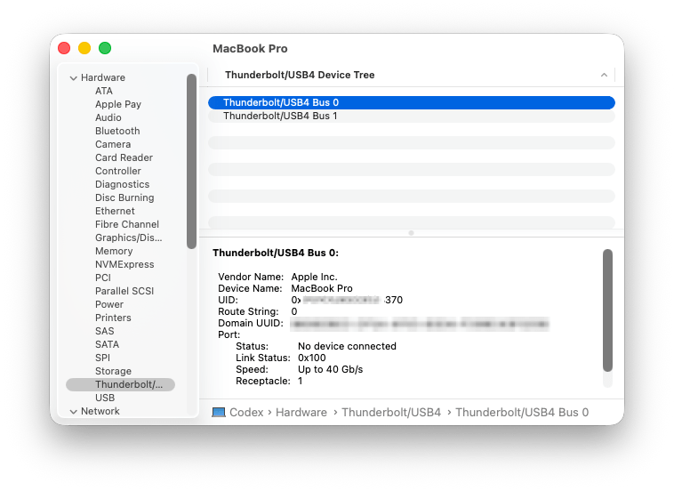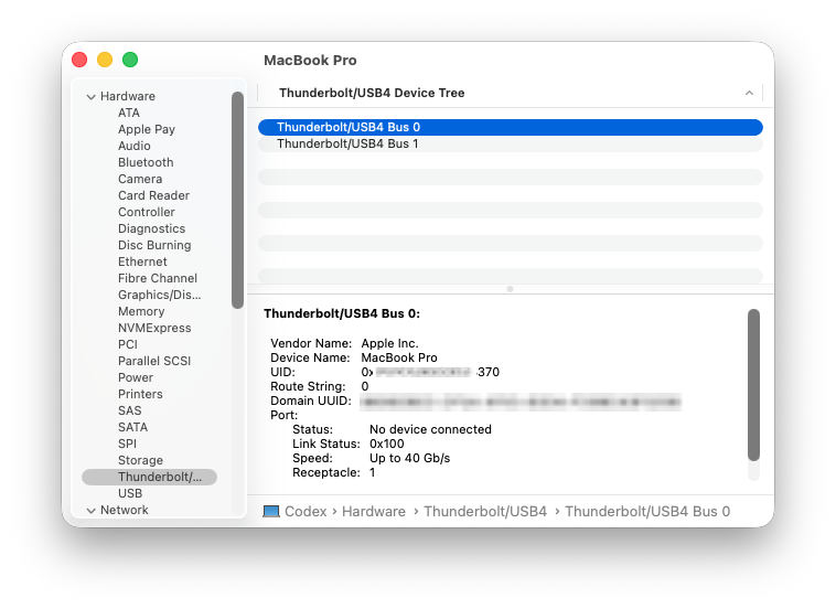 Revisé lo que la M1 me reporta sobre USB y Thunderbolt.