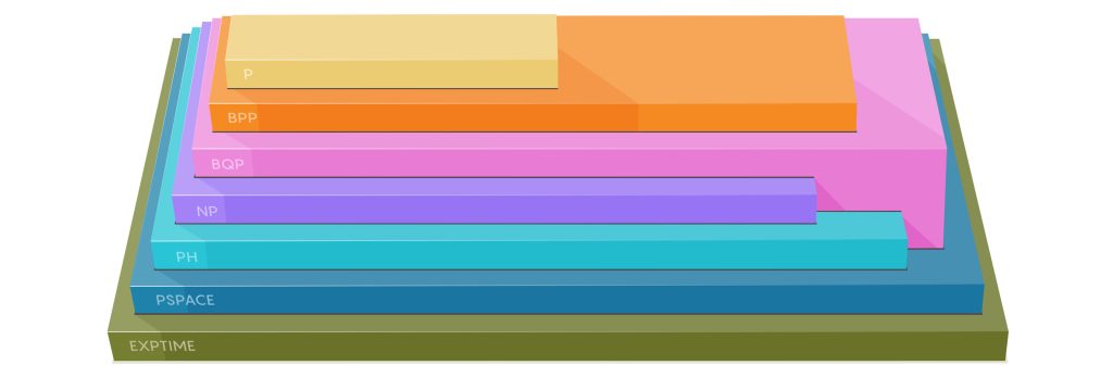 Lejos han quedado los días de 1971 en los que sólo se percibía dos grandes universos P y NP, como inicialmente introdujo Stephen Cook3.