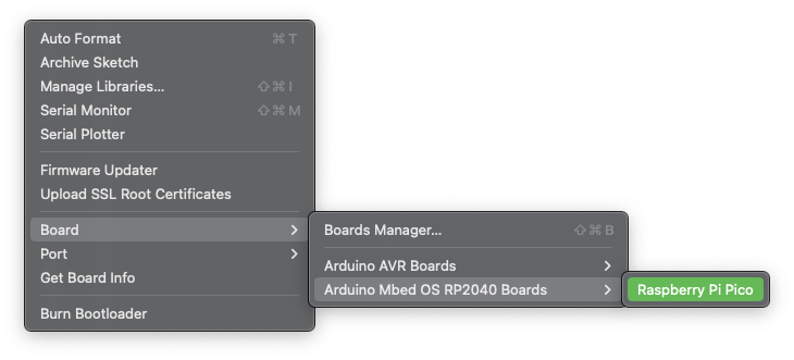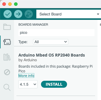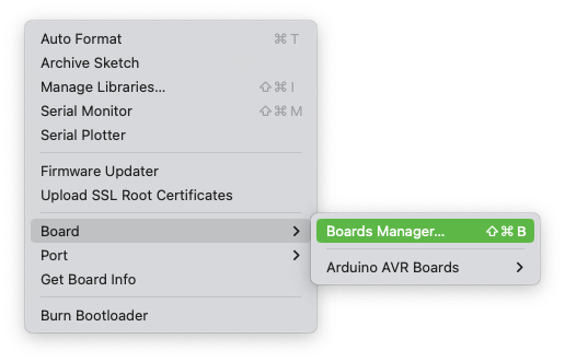 El IDE de Arduino puede ser usado para el desarrollo en Raspberry Pi. Para ello se instala el adecuado soporte de la tarjeta a través de Tools > Boards > Board Manager…