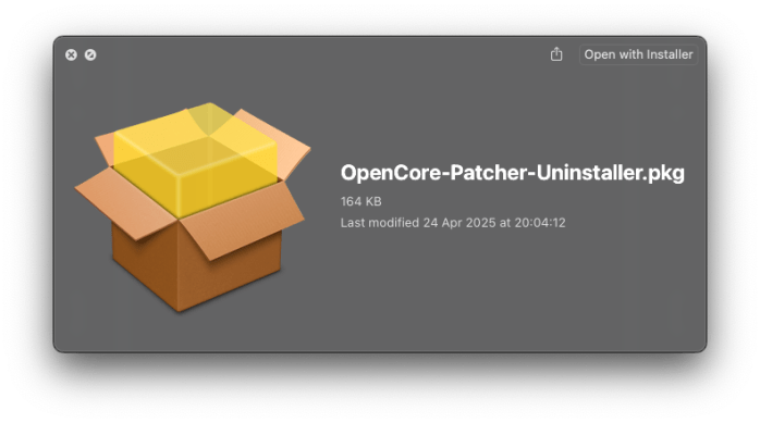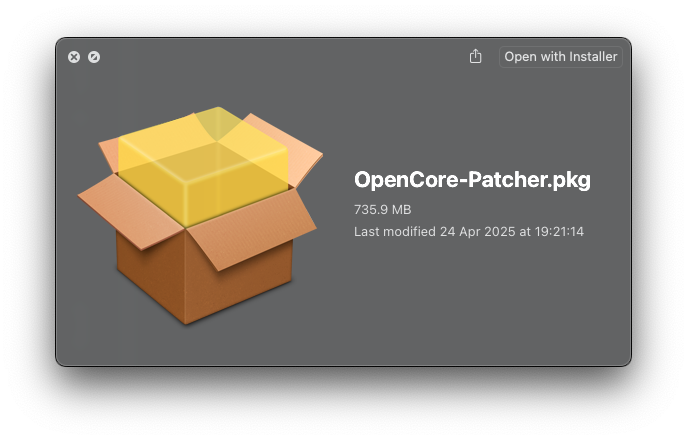 - «OpenCore-Legacy-Patcher«, github.com/dortania, repository. Visited: 2025.04.24. URL: https://github.com/dortania/OpenCore-Legacy-Patcher/releases.