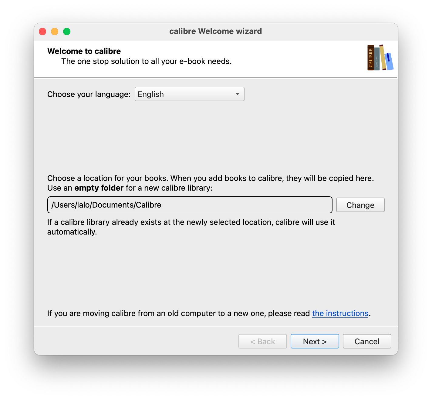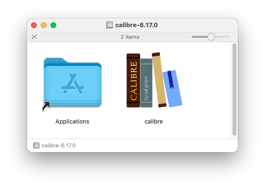 La instalación de Calibre, una vez descargado, se hace en la forma que ha caracterizado a las Mac por mucho tiempo, aunque también puede ser instalado como aplicación del usuario (en el directorio de Applications de éste y no en el /Applications del sistema).