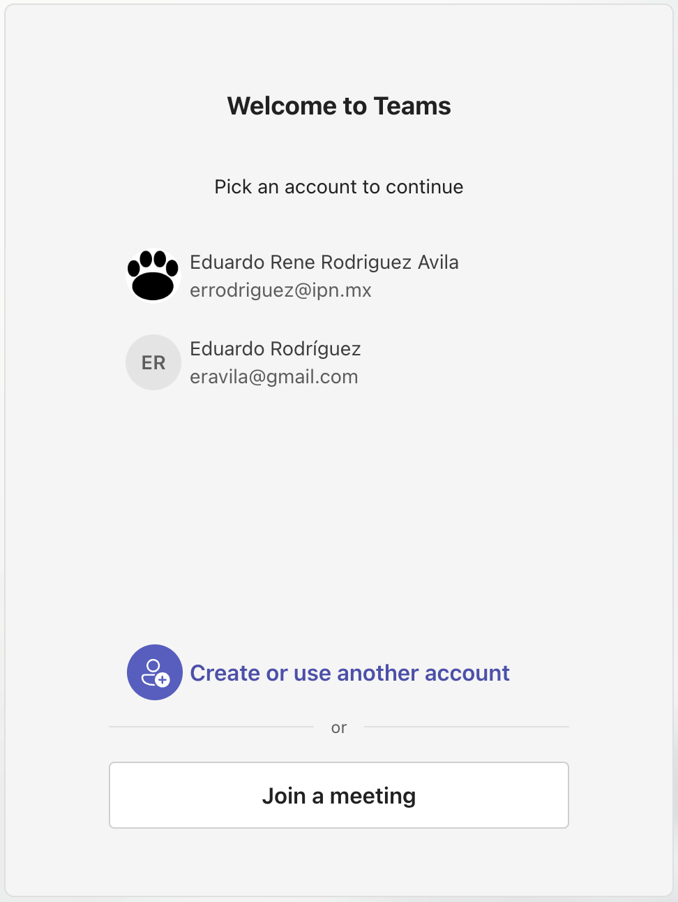 Ya sea proporcionando la dirección de correo con la que a uno lo registraron o seleccionando una de las cuentas ya registradas uno debe poder acceder (ver Configuración para detalles de acceso de primera vez).