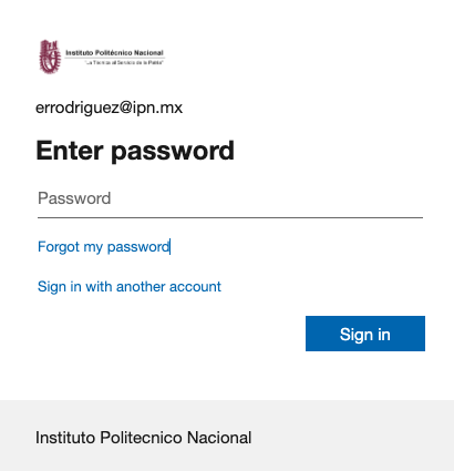 3.- Seleccionando la opción web, nos llevará a una página en la que se requerirá autenticarse. De contar ya con una cuenta en el dominio de Microsoft es posible que esa cuenta sea sugerida y se pregunte por la contraseña. De tratarse de una cuenta diferente a la del correo electrónico con el que fue registrado en el grupo de trabajo, debe optarse por la opción de firmarse con otra cuenta (donde podrá agregar dicho correo si no es mostrado en estos diálogos iniciales).