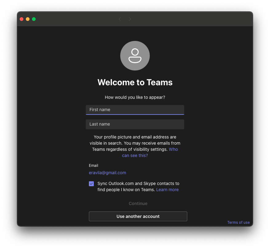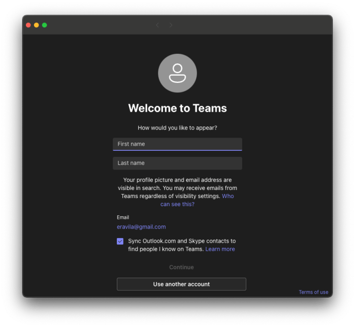 - Acceso por primera vez a Microsoft Teams usando la aplicación de escritorio