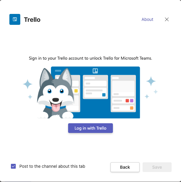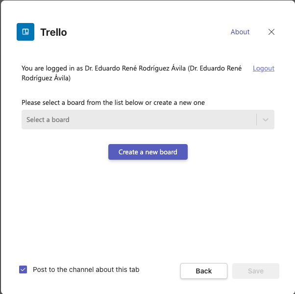 Para agregar el plug-in que permite incorporar el servicio Trello de Atlassian en la interfaz del Microsoft Teams, hacer: