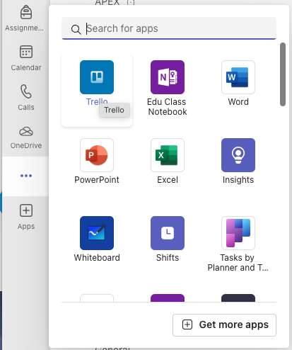 - Aunque Trello es accesible desde el team donde se agregó, también crea una entrada en el menú de servicios o aplicaciones (menú vertical de la izquierda)