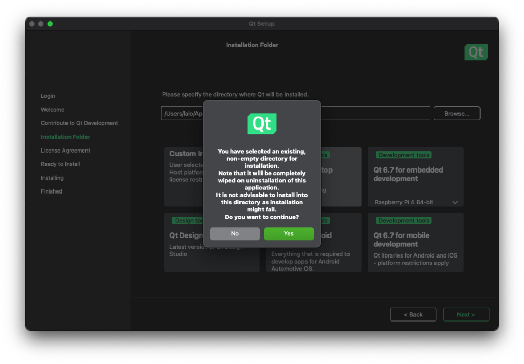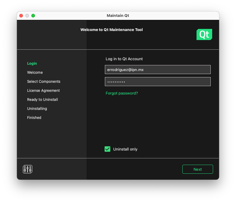La herramienta se encargará de la desinstalación. Antes de borrar la cuenta en el sitio web de Qt conviene proceder con la desinstalación.