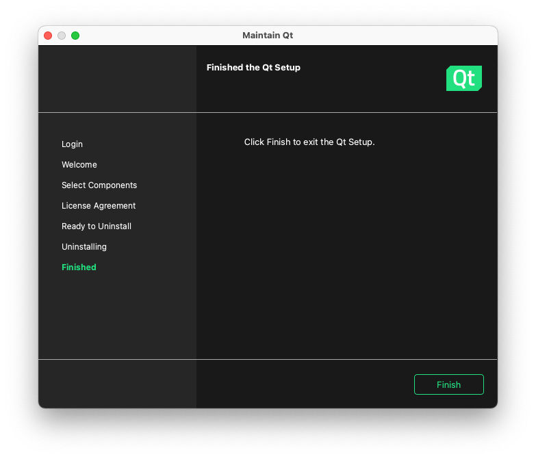 Qt incluye una herramienta de mantenimiento. A través de esta se puede llevar a cabo la desinstalación siendo la opción más adecuada.