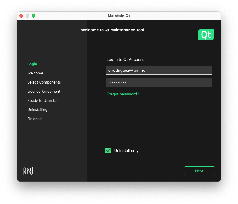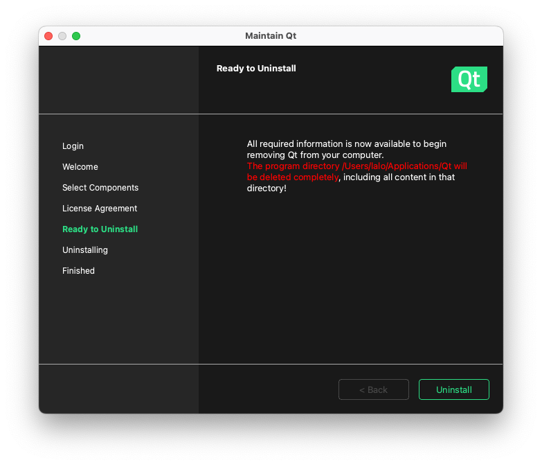 La herramienta se encargará de la desinstalación. Antes de borrar la cuenta en el sitio web de Qt conviene proceder con la desinstalación.