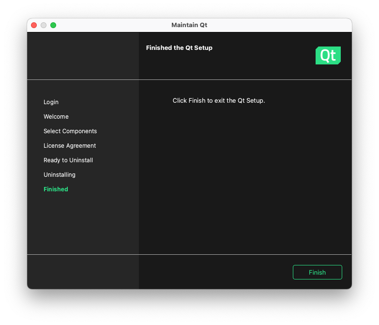 Qt incluye una herramienta de mantenimiento. A través de esta se puede llevar a cabo la desinstalación siendo la opción más adecuada.