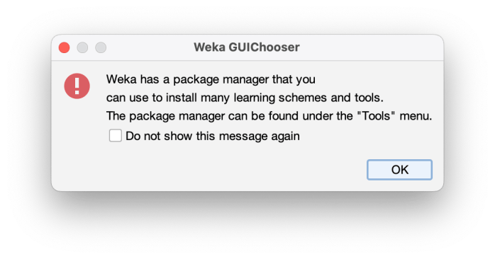 Adicionalmente, Weka nos recordará de su administrador de paquetes.