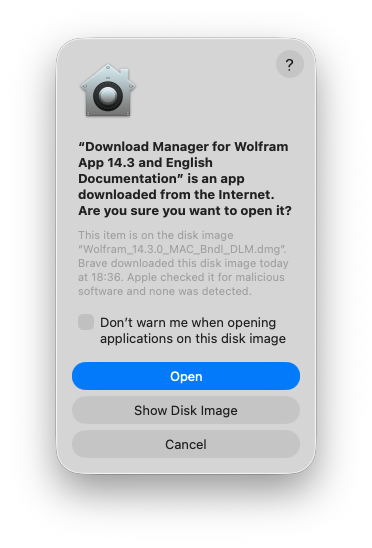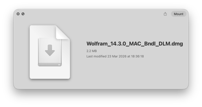 La opción de Mathematica y toda su documentación descargan una imagen de disco (2.2 MB) que incluye, como aplicación, un descargador (4.6 MB).