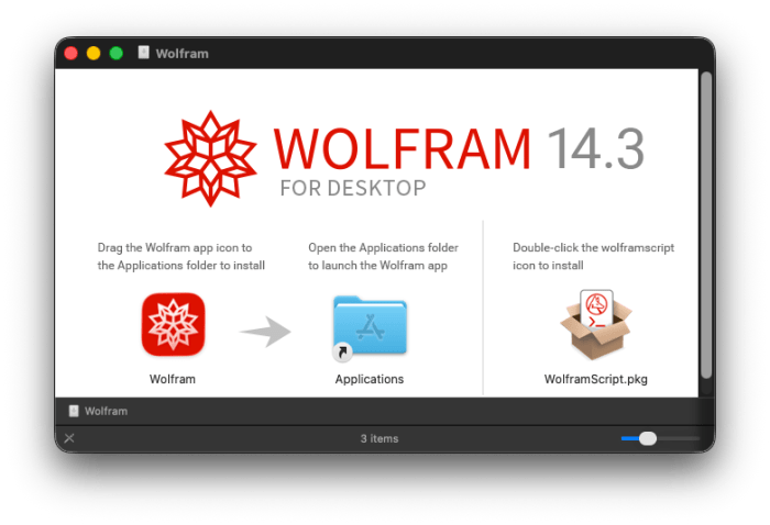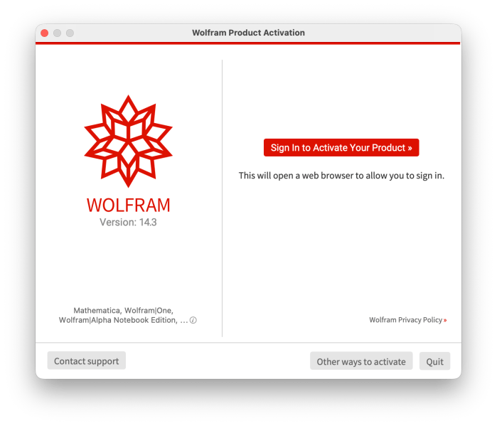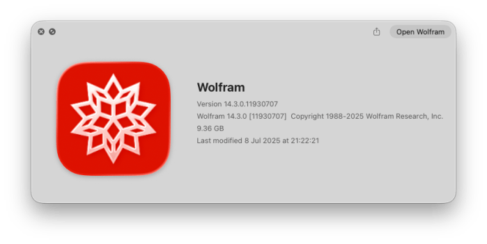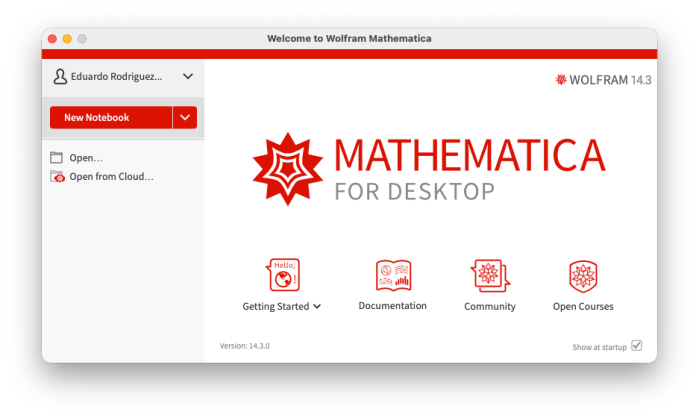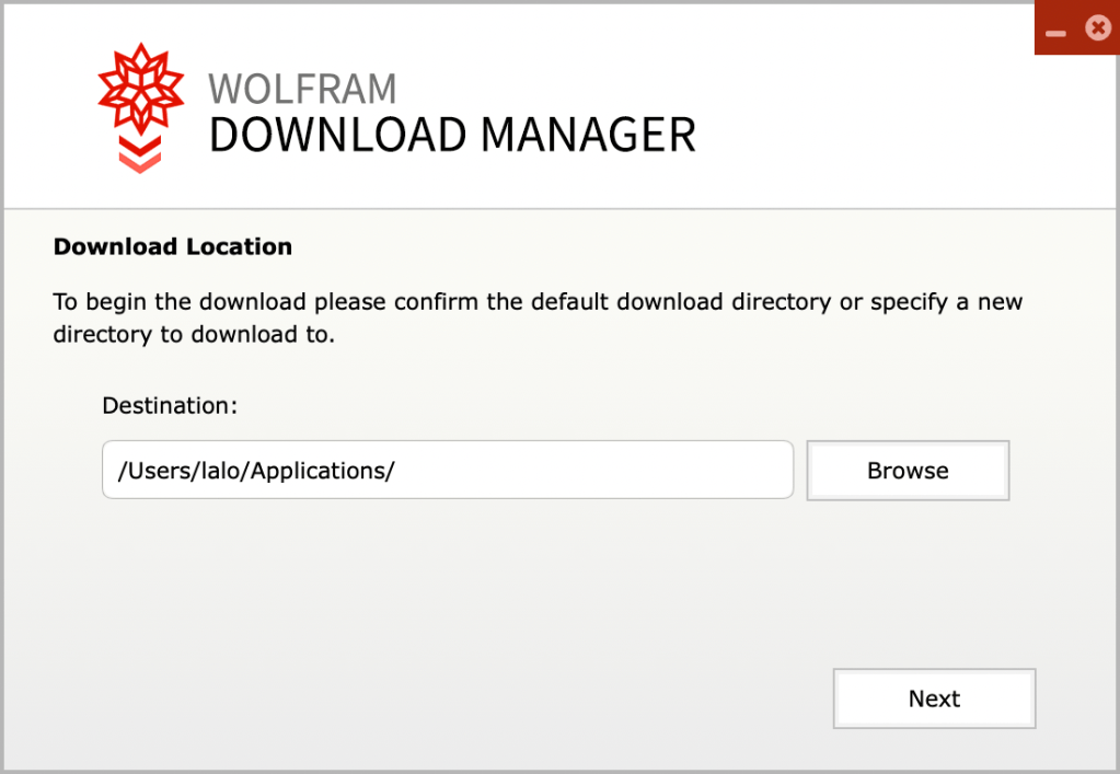La instalación de Mathematica empieza descargando el producto desde la cuenta en Worlfram Research (ver Generalidades)