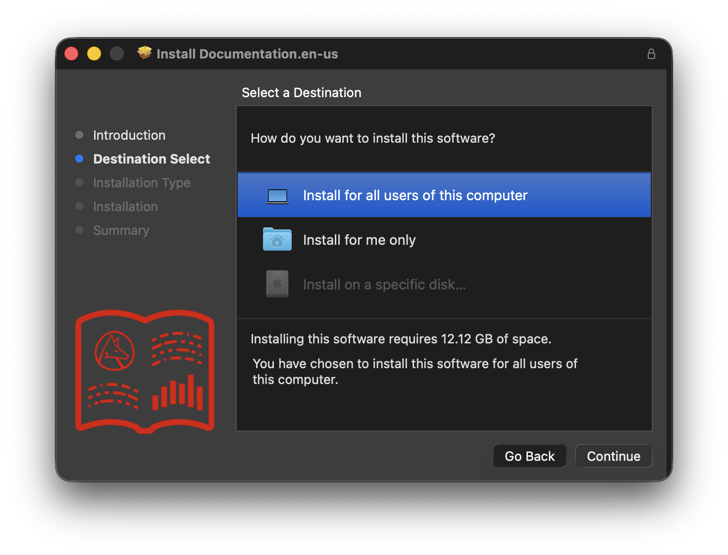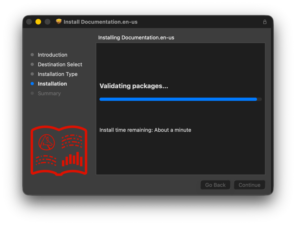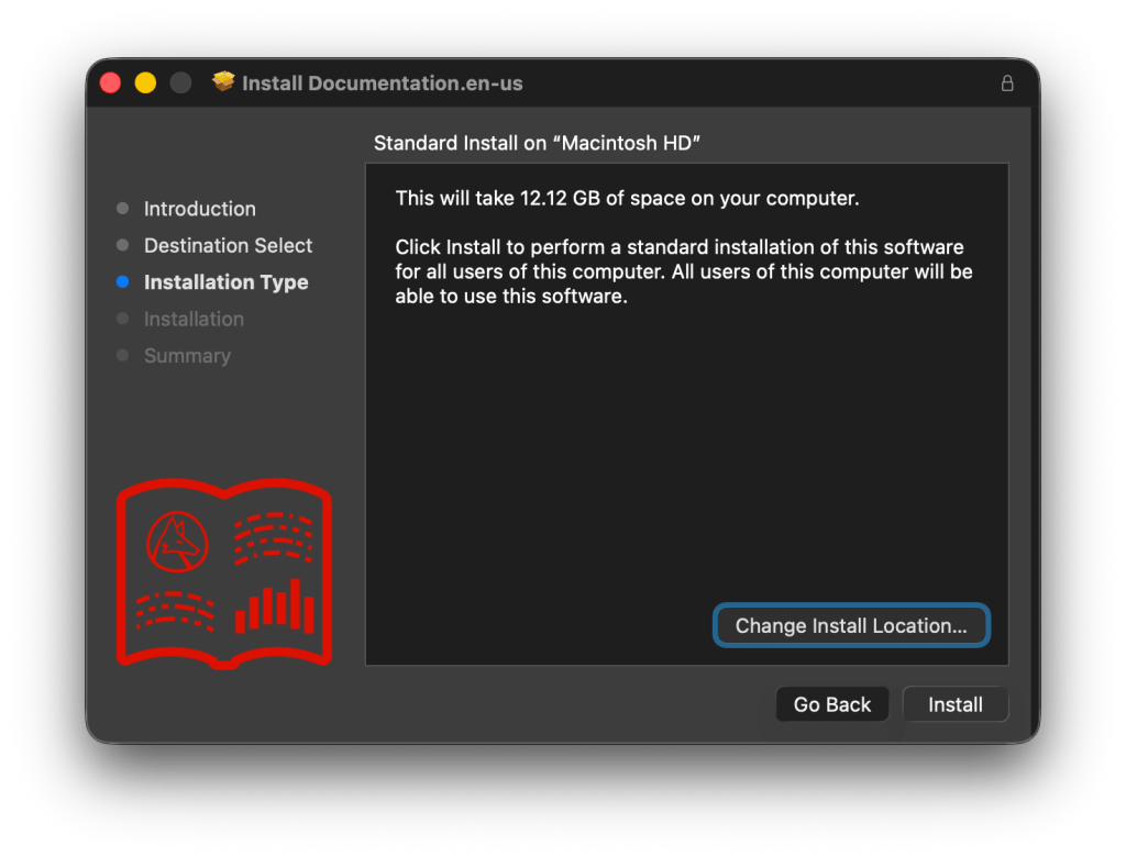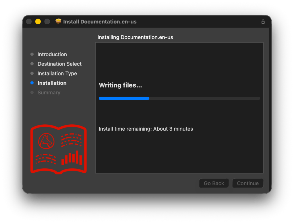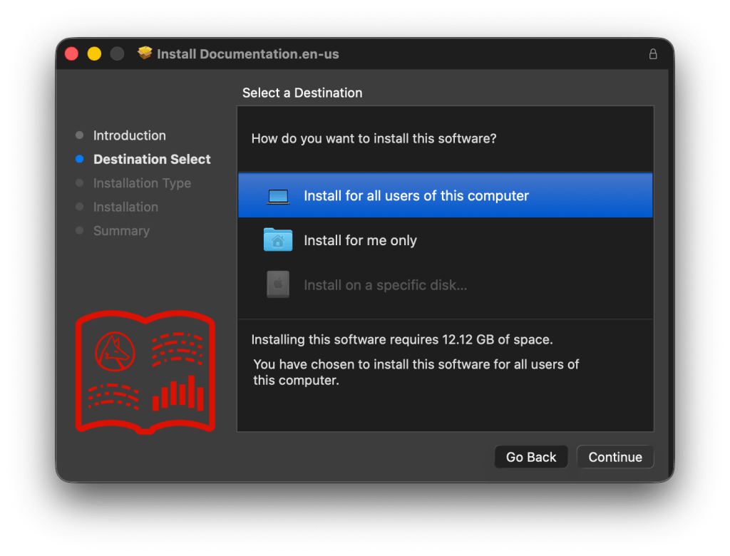 El siguiente paso puede confundir a más de uno. El descargado preguntará por una ruta, y uno puede llegar a pensar que es donde se instalará el producto (aunque se notará que no es posible seleccionar /Applications). En este paso no se instala el producto, sólo se descarga (6.23 GB) y luego la documentación, si se incluyó (3.02 GB).