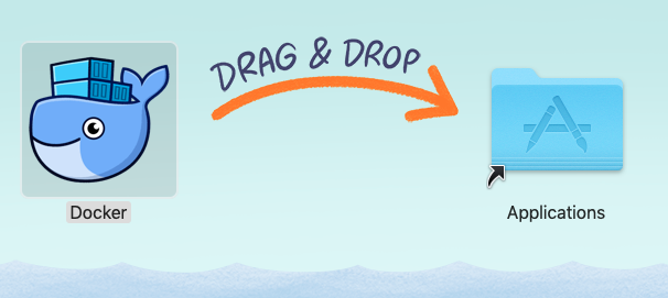 De la página de Docker, buscar y descargar la versión adecuada del Docker Desktop para el equipo y sistema operativo, en este paso es importante tener presente que lo mejor es instalar la aplicación desde una cuenta con capacidades de asministración en el equipo (ver post sobre las consecuencias). Una vez descargada la imagen de disco, abrirla y proceder con «la instalación» arrastrando la aplicación al enlace al directorio de aplicaciones.